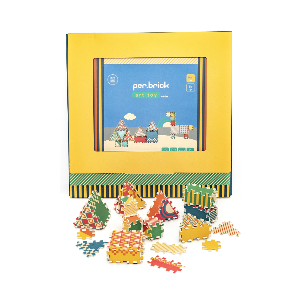 Per.Brick's Art Toy Mini Set is designed to be built into any creative design that you can imagine. These blocks are made of compressed multilayer paperboard, providing a firm and durable surface. Diverse patterns and designs printed on the surface provide joyful, yet educational content for kids and adults.