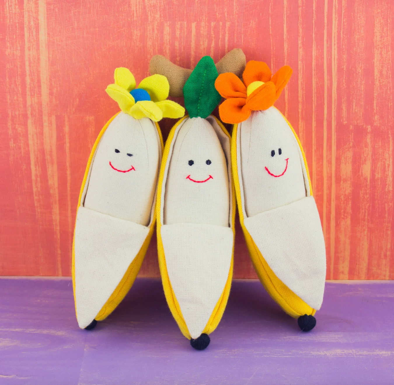 - Each banana has a different feature - rattle, squeak, crinkle