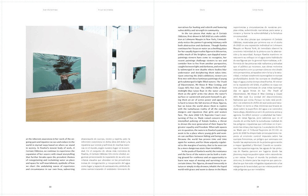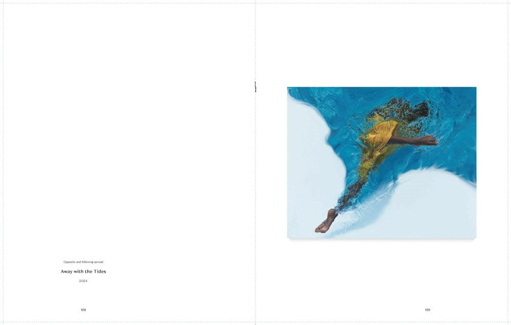 A Poetic Immersion into History, Identity, and Water. Step into the luminous, immersive world of Calida Rawles—where water becomes a mirror, a memory, and a movement. Away with the Tides is the first museum catalog dedicated to the visionary Los Angeles–based artist whose spellbinding, hyperrealistic paintings have redefined contemporary portraiture. Known for her transcendent renderings of Black bodies submerged in brilliant, flowing water, Rawles merges hyperrealism with poetic abstraction. Her work explores the dualities of water—as a symbol of freedom and oppression, healing and harm—anchored in the cultural and historical weight of racial injustice.