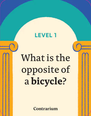 Introducing Contrarium: A Party Game of Brain-Twisting Debates—Where Opposites Are Just the Beginning! Get ready for Contrarium, the game that turns your brain upside down and sparks hilarious debates! What’s the opposite of a bridge? A politician? Ice cream? You won’t believe the answers that come your way. In this fast-paced and fun game, the rules are simple: Guess the most common opposite—and watch the conversation (and laughter) unfold!No complicated rules here! Simply draw a card and dive straight into the debate. Whether you're playing solo or teaming up with friends, your goal is to come up with the most unexpected, funny, and convincing opposite. From the ordinary (toast) to the bizarre (a premonition), there are no wrong answers, just endless laughs.