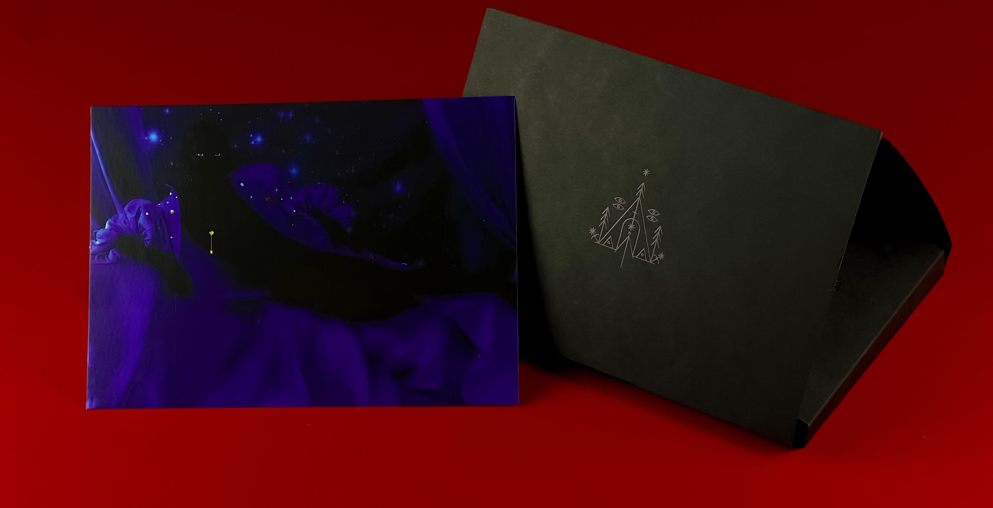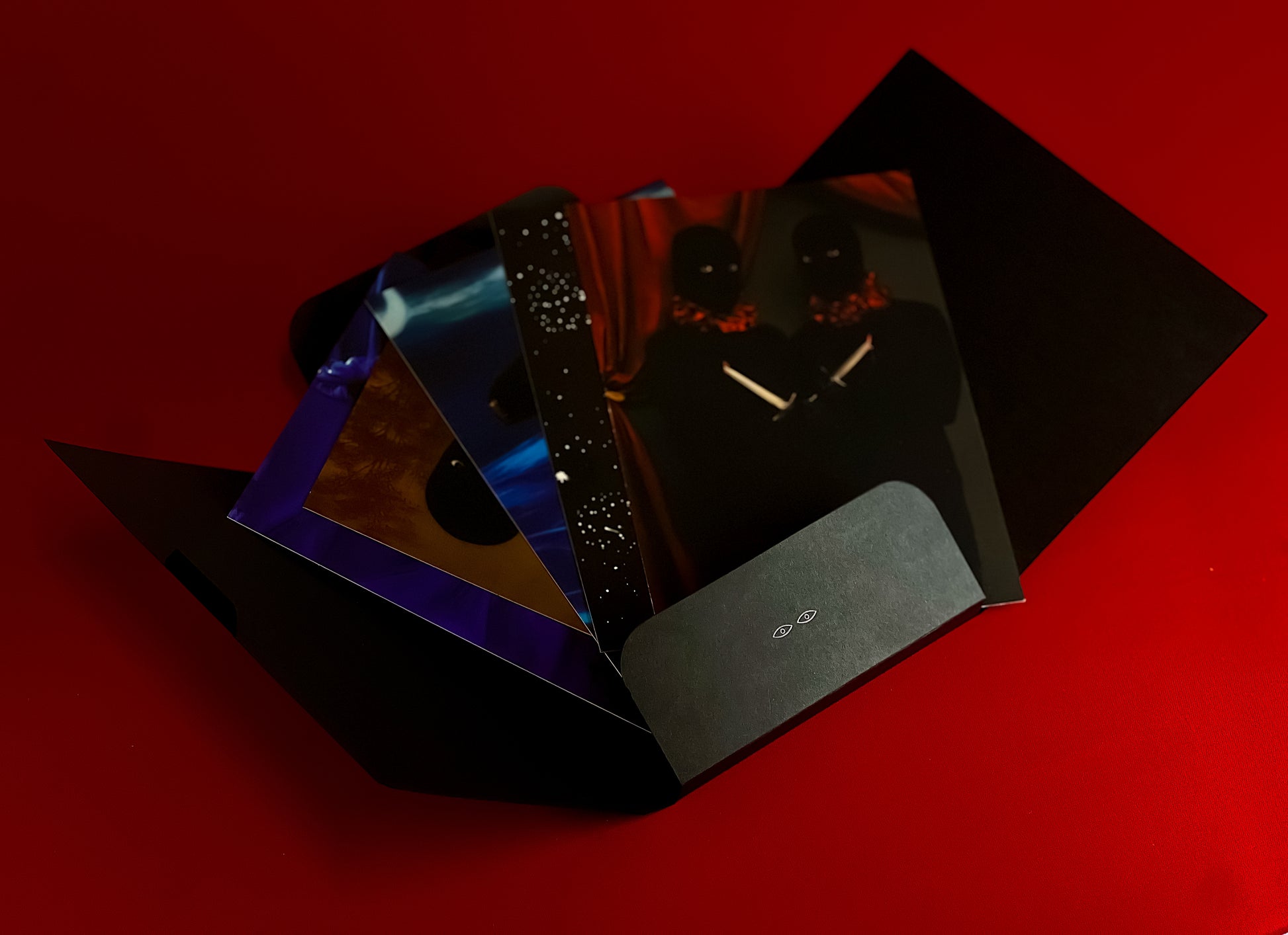 Each print in this set showcases a key work from the exhibition, offering a window into the brothers’ striking visual cosmology: