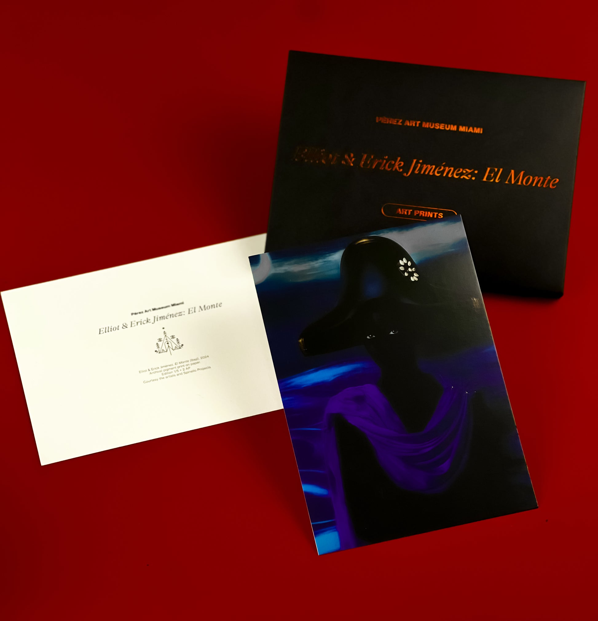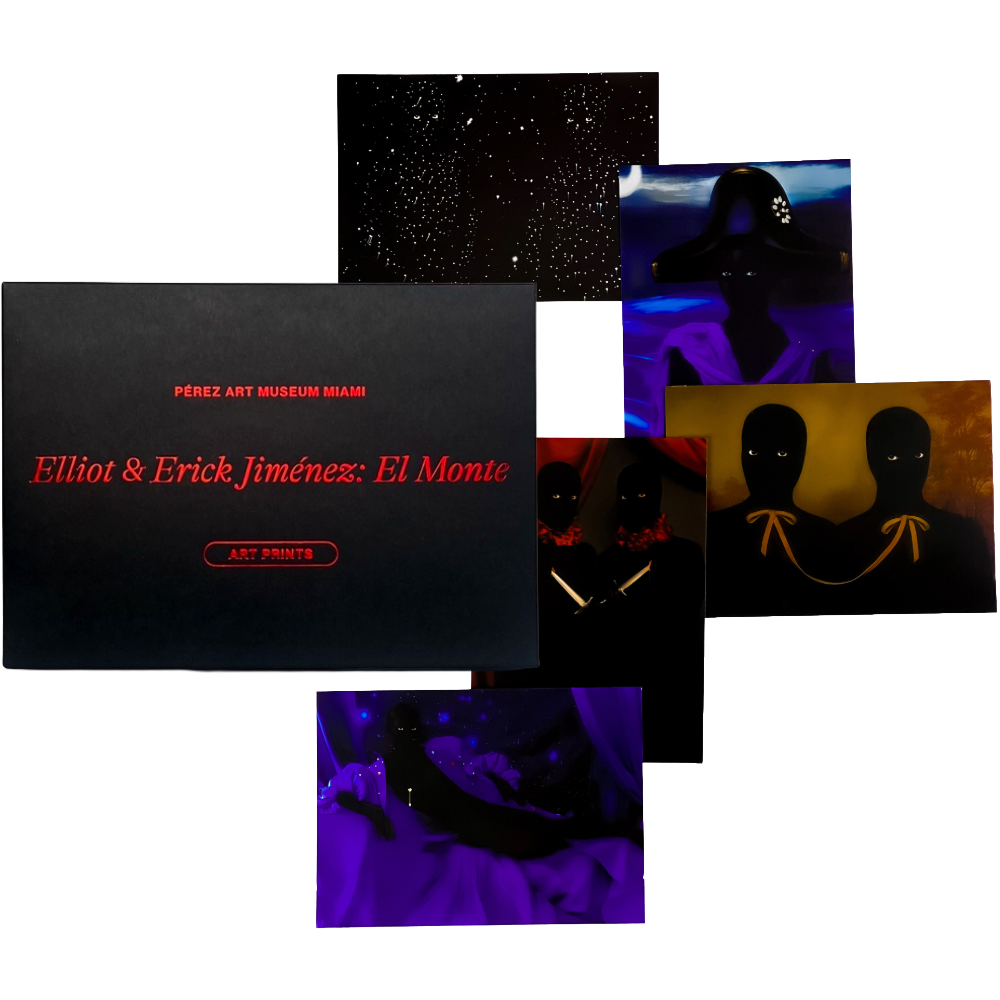 Together, these works embody the Jiménez brothers’ vision—layering Lucumí (Santería) cosmology, Catholic iconography, and Western art history into a syncretic spiritual language. As identical twins, their practice is itself an act of duality and mirroring, a dialogue between the visible and invisible, the earthly and cosmic. This set includes five 5×7 prints beautifully packaged and ready for display—a perfect keepsake from PAMM’s groundbreaking exhibition, a gift for art lovers, or a meaningful addition to your own sacred space.