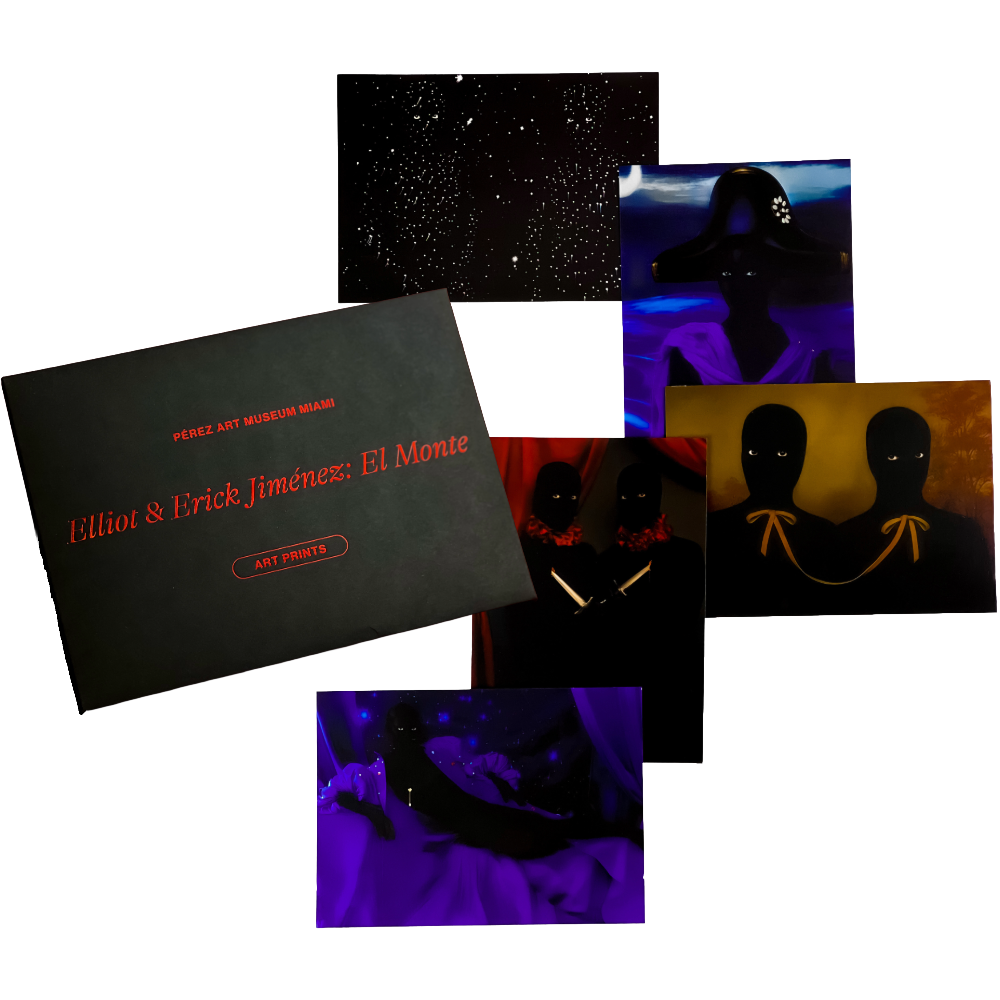 Celebrate the first solo museum exhibition of Cuban-American twin artists Elliot & Erick Jiménez with this exclusive collection of five 5×7 art prints from Elliot & Erick Jiménez: El Monte. Known for their evocative blend of photography, spirituality, and performance, the brothers channel the mysteries of the forest—el monte—to explore ancestry, ritual, and the power of twinhood as both lived experience and sacred symbol.