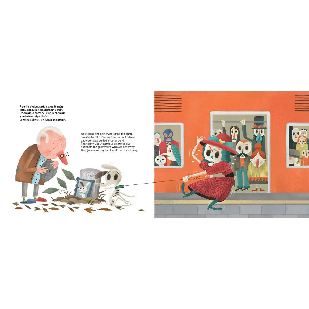 Meet Huesos—Abuelo’s four-legged travieso! He’s a rambunctious pup with endless energy, a mischievous grin, and chomping teeth that get into everything—from Grandpa’s slippers to the poor neighborhood mailman’s shoes. But one day, when Calaca Pascuala knocks on his door, Huesos finds himself on an unforgettable journey through the afterworld. Of course, even there, he just can’t help stirring up a little trouble!