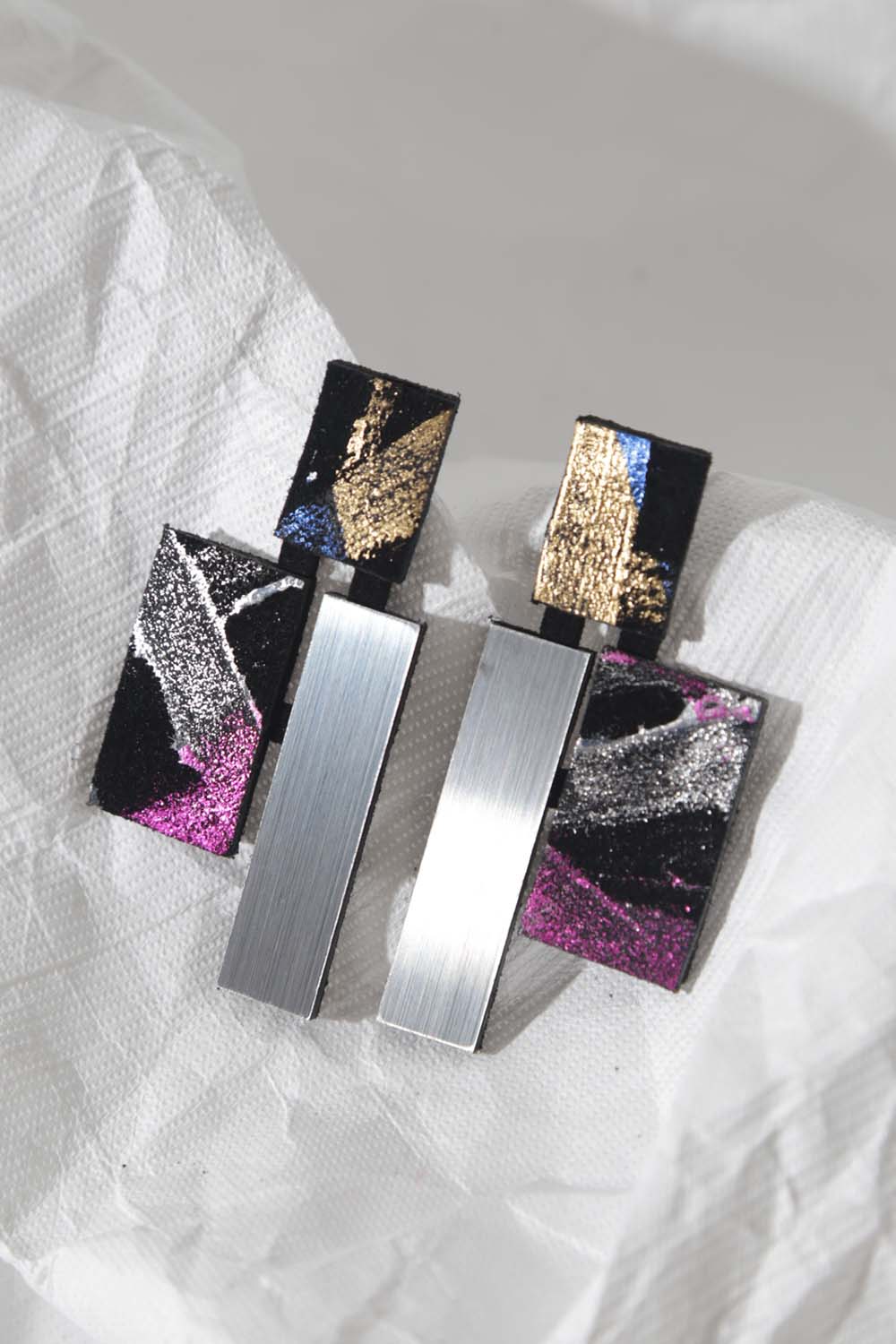 Turn every moment into a wearable art experience with the Klee Earrings—the perfect sculptural companions to the Klee V Necklace. Inspired by the bold geometric spirit of Paul Klee, these earrings celebrate shape, color, and modern artistry with their striking arrangement of overlapping rectangles and crisp, contemporary lines.