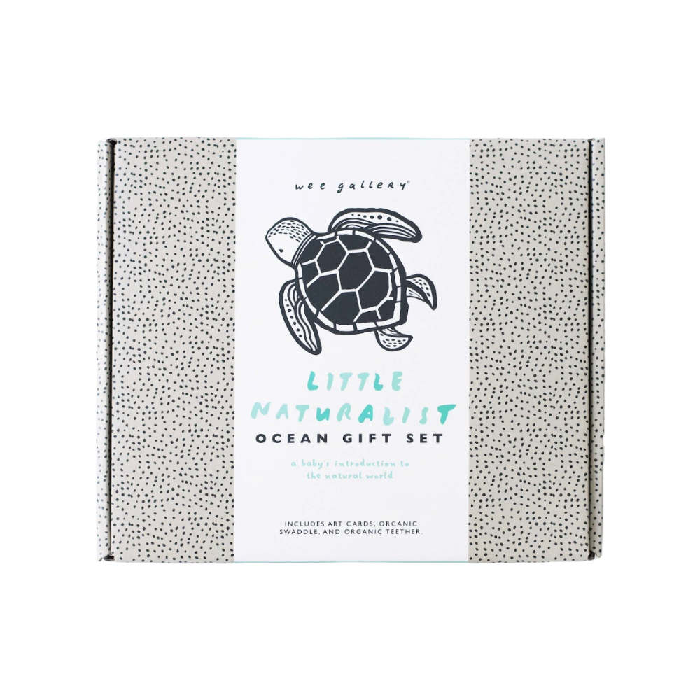 Looking for the perfect gift to celebrate the arrival of a precious little one? Look no further than this ocean-themed gift set by Wee Gallery, thoughtfully curated to bring joy and wonder to both baby and new parents alike! Inside, you'll find an Organic Seahorse Teether, Art Cards, and Organic Cotton Muslin Swaddle – a trio of treasures designed to stimulate baby's senses and create precious bonding moments.