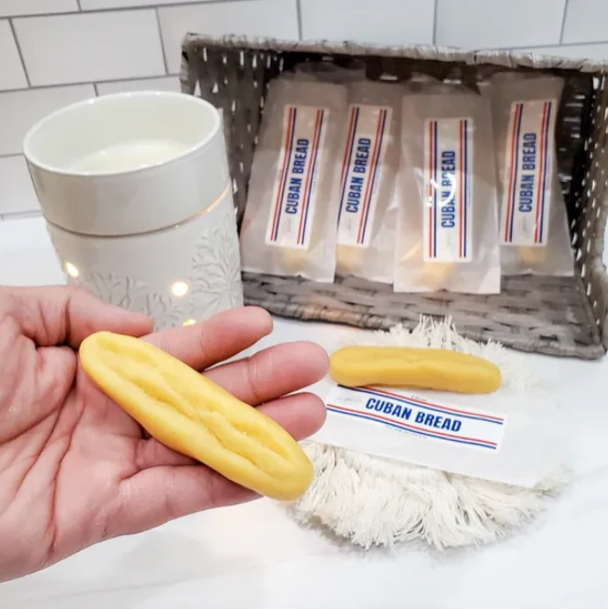 Smells Like Havana, Not Your Kitchen! Introducing the most mouthwatering wax melt you’ll ever lay eyes (and nose) on — the Mini Cuban Bread Loaf Wax Melt! These tiny loaves look so real, you’ll swear they came straight from your neighborhood Cuban bakery… but don’t take a bite! (Seriously—don’t.)Handcrafted from scratch, each “loaf” is bursting with the savory scent of freshly baked Cuban bread—think salty, crackling crust and warm, buttery dough rising from your favorite panadería.