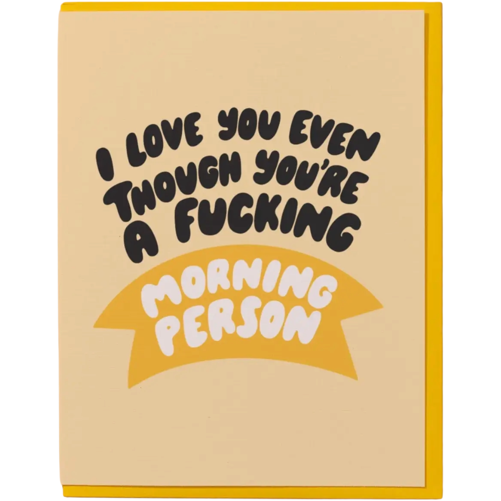 Because, let’s be real… it’s hard to love a morning person when you’re not one. This cheeky card says exactly what you’re thinking: “I love you even though you're a fuckin' morning person.” Perfect for couples, besties, or anyone who drives you nuts by waking up at the crack of dawn with way too much energy.