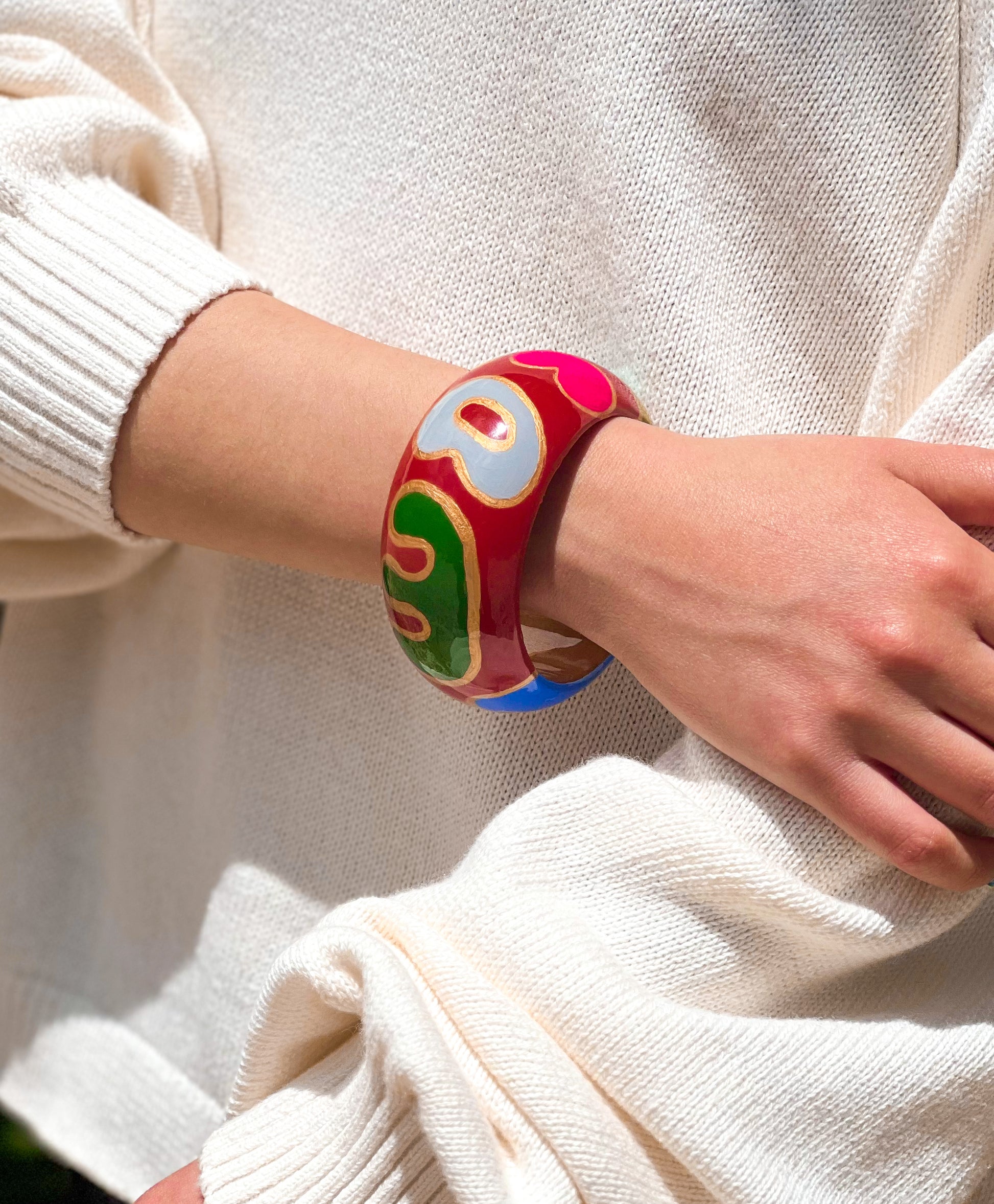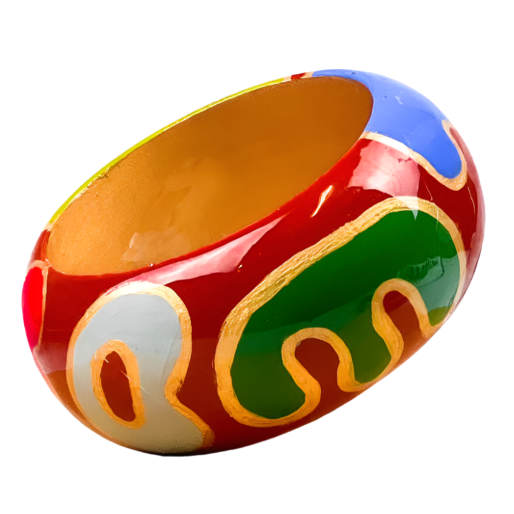Once the painting is complete, the piece is coated with a layer of clear UV resin. This finish not only protects the delicate artwork from wear and tear but also enhances the colors, giving the jewelry a glossy, glass-like appearance. The resin adds durability and ensures the paint remains intact over time.