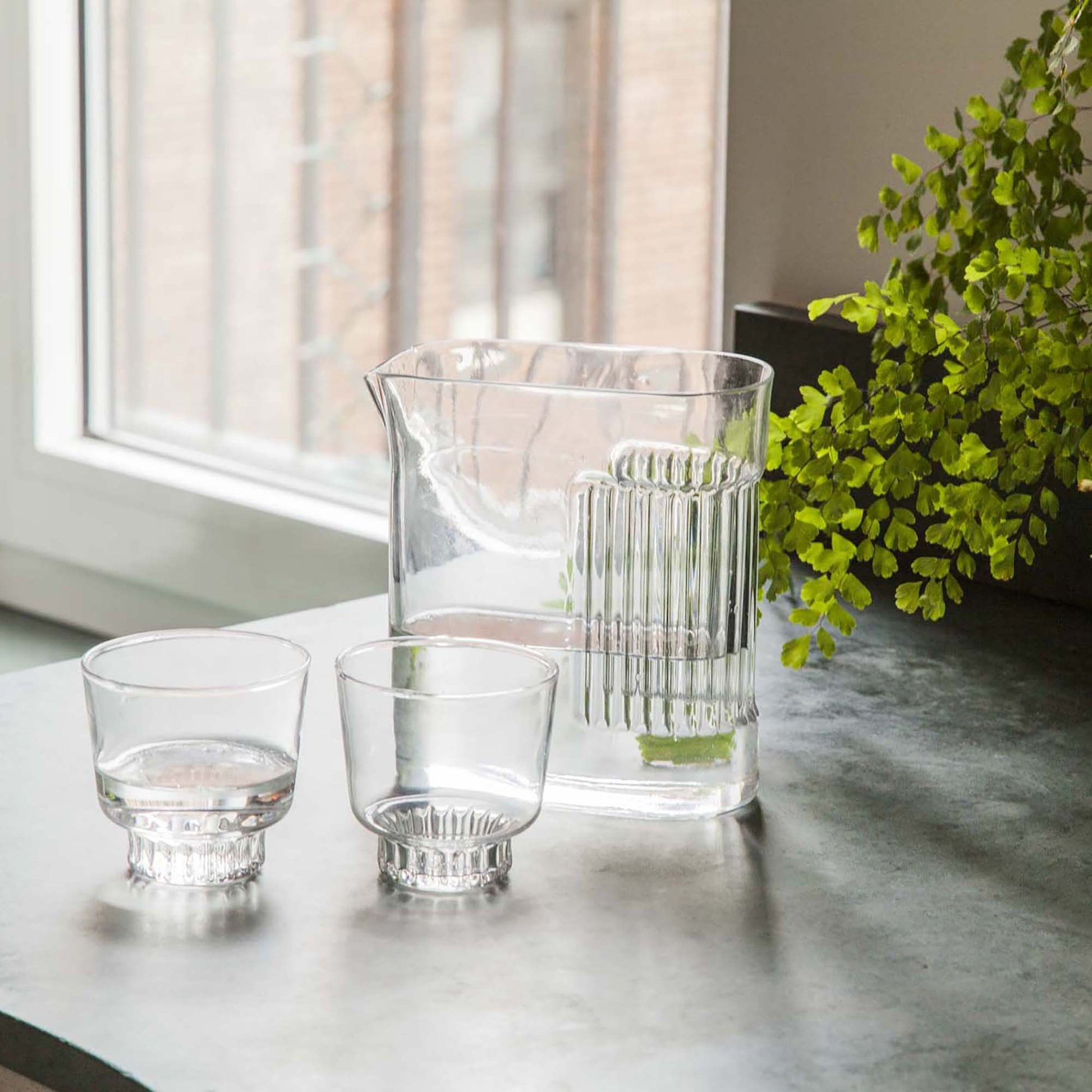 Elegance in every ripple. Sip in style with the Ridge Kitchen Small Cups — a set of two hand-blown 6 oz. glasses designed to elevate your everyday rituals. Featuring a rippled surface that provides a natural grip and creates a mesmerizing wave-like optical effect in the light, these glasses blend form and function effortlessly.