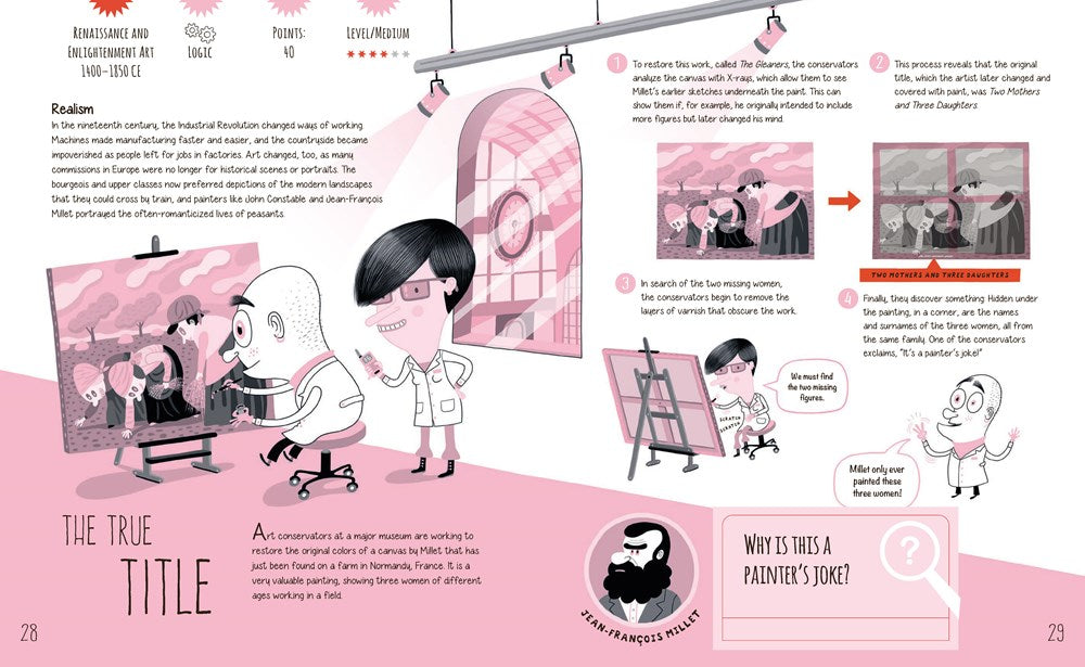 20+ Mind-Twisting Mysteries to Challenge Your Inner Detective! Art is everywhere—and so are the clues! Get ready to crack the case in Sleuth & Solve: Art, the thrilling new game-in-a-book that blends the excitement of a whodunit with the wonder of art history. Whether you’re a curious kid, a puzzle-loving grown-up, or an art aficionado, this collection of clever mysteries will put your deduction skills to the ultimate test. Inside, you’ll uncover 20+ brain-bending cases inspired by every corner of the art world—from prehistoric cave paintings to surrealist masterpieces, Cubist puzzles, Impressionist intrigue, and so much more. Every page is packed with hidden clues, mind-boggling twists, and fascinating facts about the world’s most iconic art movements. Think you’ve got what it takes to solve them all?