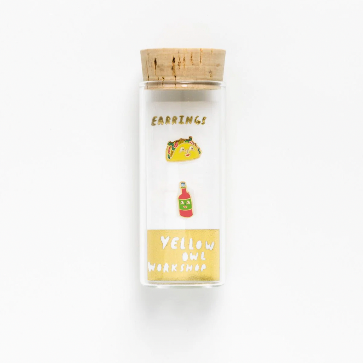 Add some spice to your outfit with these Taco & Hot Sauce Earrings from Yellow Owl Workshop. These super cool and unique earrings are perfect for taco lovers and add a touch of playfulness to any look. Made with exceptional craftsmanship, they are sure to be a statement piece in your jewelry collection.