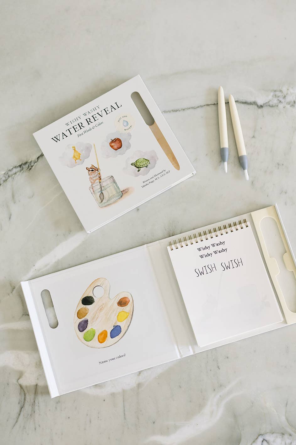 Color. Discover. Play. Repeat! Make learning magical with Wishy Washy – Water Reveal Edition, the reusable paint-with-water activity book that turns everyday moments into colorful adventures! Created by professional artist and award-winning children’s author Tabitha Paige, this charming interactive book invites toddlers to explore first words, colors, and creativity—all with a splash of water. Each beautifully illustrated page starts in black-and-white… until your little one “paints” it with the included refillable water pen. Like magic, vibrant colors appear! When the page dries, the colors fade—so the fun can begin all over again. It’s the perfect mess-free creative play for curious little learners.
